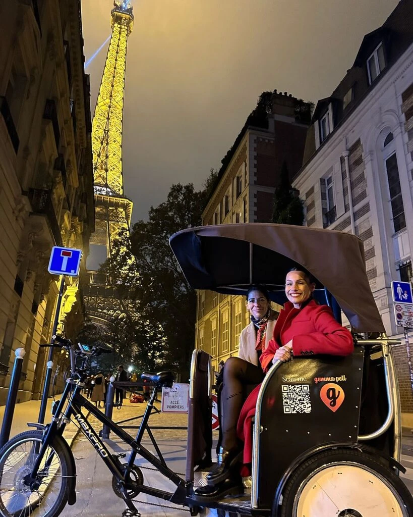 Una de las paradas más especiales fue en la Torre Eiffel. Allí, junto a su amiga, subieron al mirador para admirar la vista de París desde las alturas. Pampita aprovechó el momento para sacar una foto junto al mirador, con el río Sena y las luces de la ciudad de fondo. En redes sociales compartió su emoción y el impacto de esa vista nocturna.