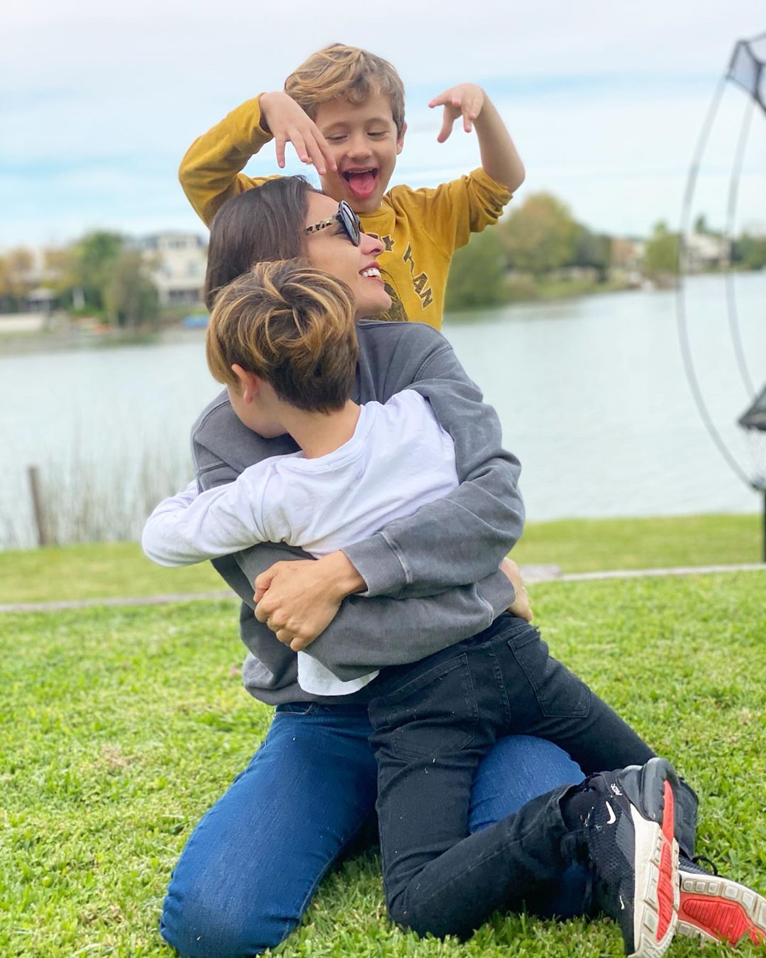 Mientras disfruta del gran jardín que tiene en su casa, la modelo compartió unas fotos de una tarde consus tres hijos fruto de su relación con Benjamín Vicuña. A través de su cuenta de Instagram, Pampita se mostró sonriente al jugar con sus nenes en el inmenso parque de su jardín con vista al lago.