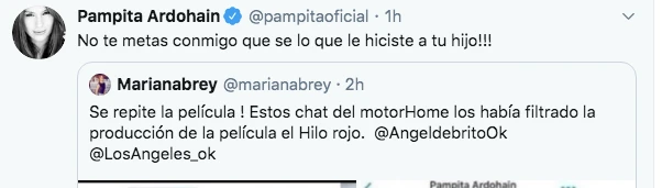 "No te metas conmigo porque yo sé lo que hiciste con tu hijo" gritó Pampita desde su perfil, en una inesperada y profunda agresión que, por el momento, no encontró respuesta.
