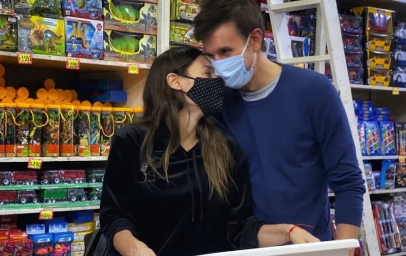 "Pampita y Roberto compraron juguetes en un local de Once, para donar el Día del Niño"