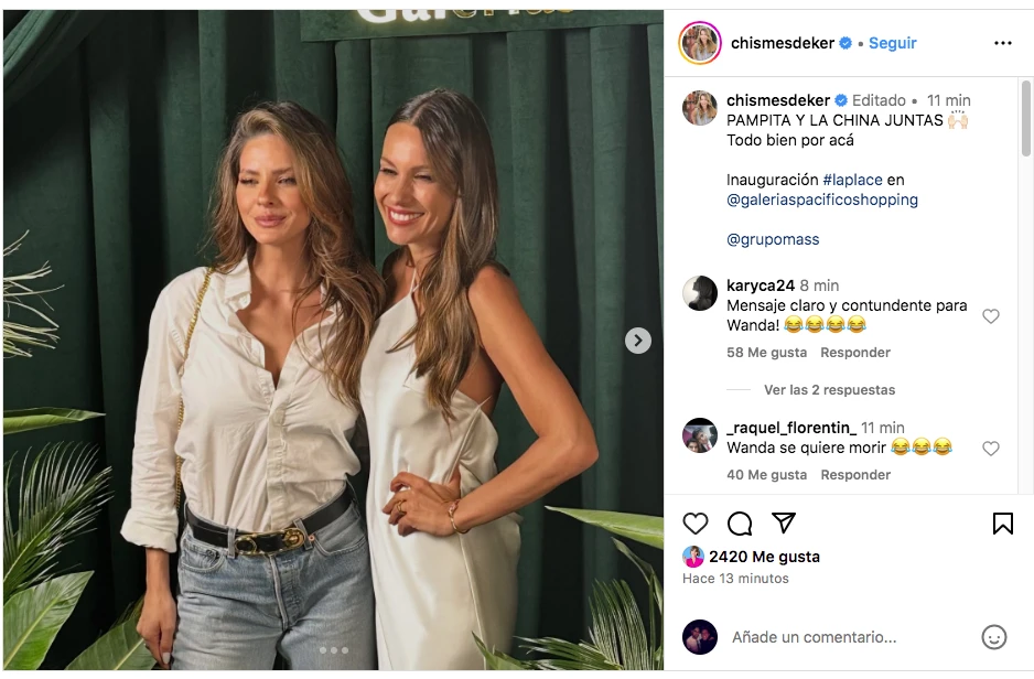 Ahora, todo eso parece que quedó en el pasado. ¿Por qué? Resulta que Pampita y Suárez acaban de encontrarse en un evento, en la inauguración de un local en un shopping en Palermo y se abrazo con mucho amor, sonrieron, se prodigaron besos y posaron juntas.