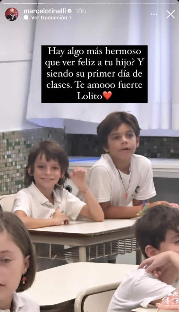 Lorenzo Tinelli, más conocido como “Lolo” comenzó las clases este miércoles 21 de febrero en el ciclo lectivo 2024 y su padre, Marcelo Tinelli compartió algunas imágenes de lo que fue acompañarlo en esta experiencia. El conductor chocho y orgulloso de ver a su hijo crecer decidió mostrarlo junto a su compañero ya en el aula.