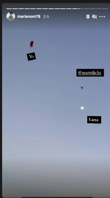 Mariano posteó en sus stories un video de cuando aterrizaron en el aeródromo, en el que se ve como se abraza con Di Chiara, ambos con rostros de felicidad absoluta. Por su parte, el novio de Juliana publicó un fragmento de ambos en la avioneta, en los instantes previos a saltar, donde el miedo, los nervios eran los protagonistas.