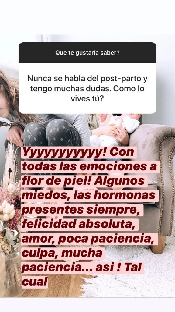 La mayoría de las preguntas que recibió Paula eran de mujeres embarazadas, muchas con miedo de ser sometidas a una cesárea: "Hay que ver por qué fue por cesárea. Pero información, confianza, un equipo médico que acompañe amorosamente y respetando la fisiología del cuerpo es clave", explicó la modelo. Sobre el post parto contó: “Con todas las emociones a flor de piel. Algunos miedos, las hormonas presentes siempre. Felicidad absoluta, amor, poca paciencia, culpa, mucha paciencia, así, tal cual”, se sinceró.