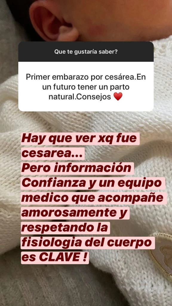 Cuando le preguntaron cómo fue el parto, respondió: "Arranqué a las 16, a las 20 todo se puso más intenso; y a las 23 nació". También contó que la bebé pesó 4,6 kilogramos pero tranquilizó a sus seguidoras: "Nuestro cuerpo hace bebés que podemos parir". "No hay nada anormal en el peso. A la hora estaba caminando".
