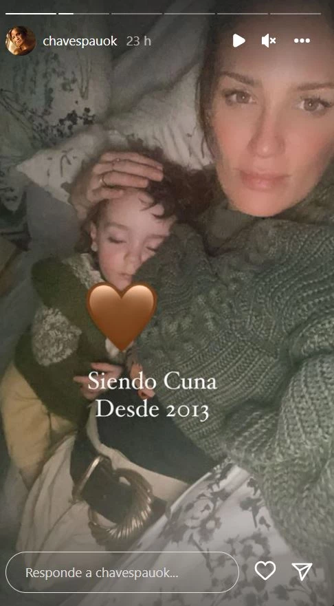 “Siendo cuna desde 2013”, anunció la ex Súper M en sus historias, al compartir una tierna foto con su hija menor, ya profundamente dormida en su regazo.
