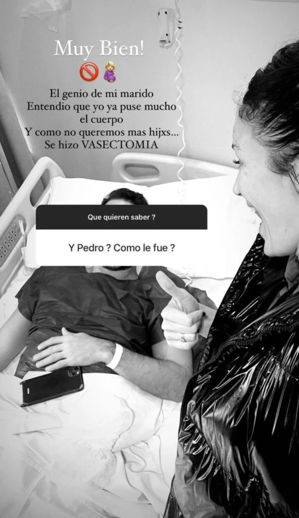 A través de las historias de Instagram, Paula anunció una noticia muy importante para su familia. “¡A Pedro le fue muy bien! El genio de mi marido entendió que yo ya puse mucho el cuerpo y como no queremos más hijos, se hizo una vasectomía”, contó.
