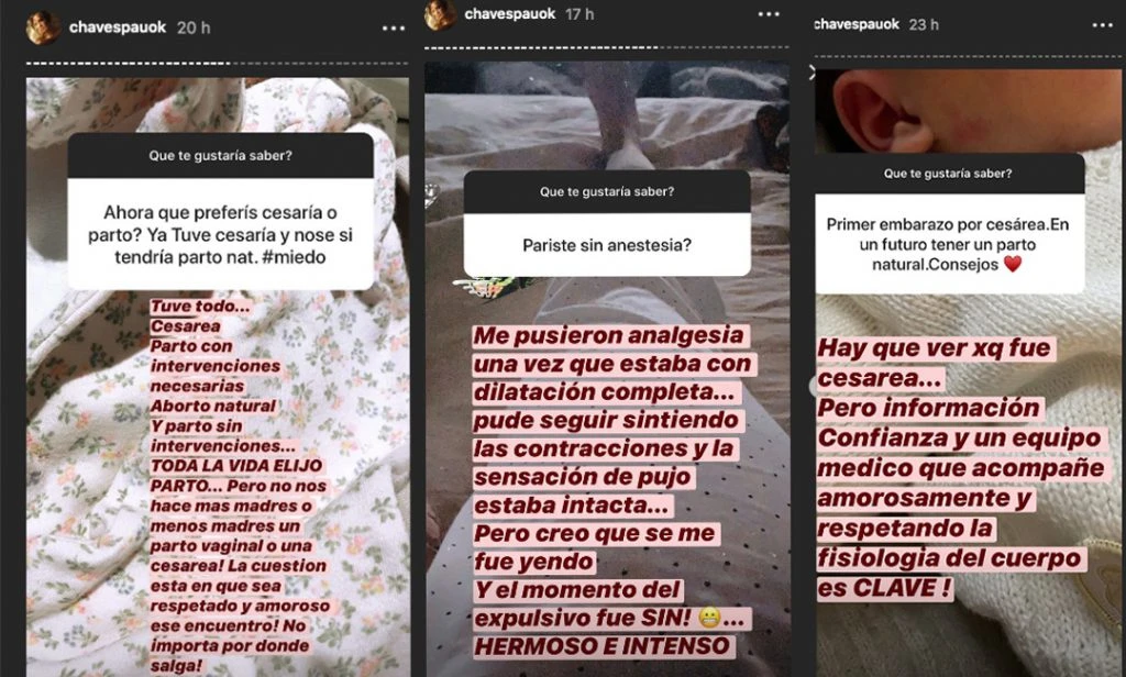 Además en estas stories contó otros detalles del parto. “Me pusieron analgesia una vez que estaba con dilatación completa. Igual pude seguir sintiendo las contracciones y la sensación de pujo. Pero se me fue yendo y al momento del expulsivo fue sin analgesia. Hermoso e intenso”, dijo.