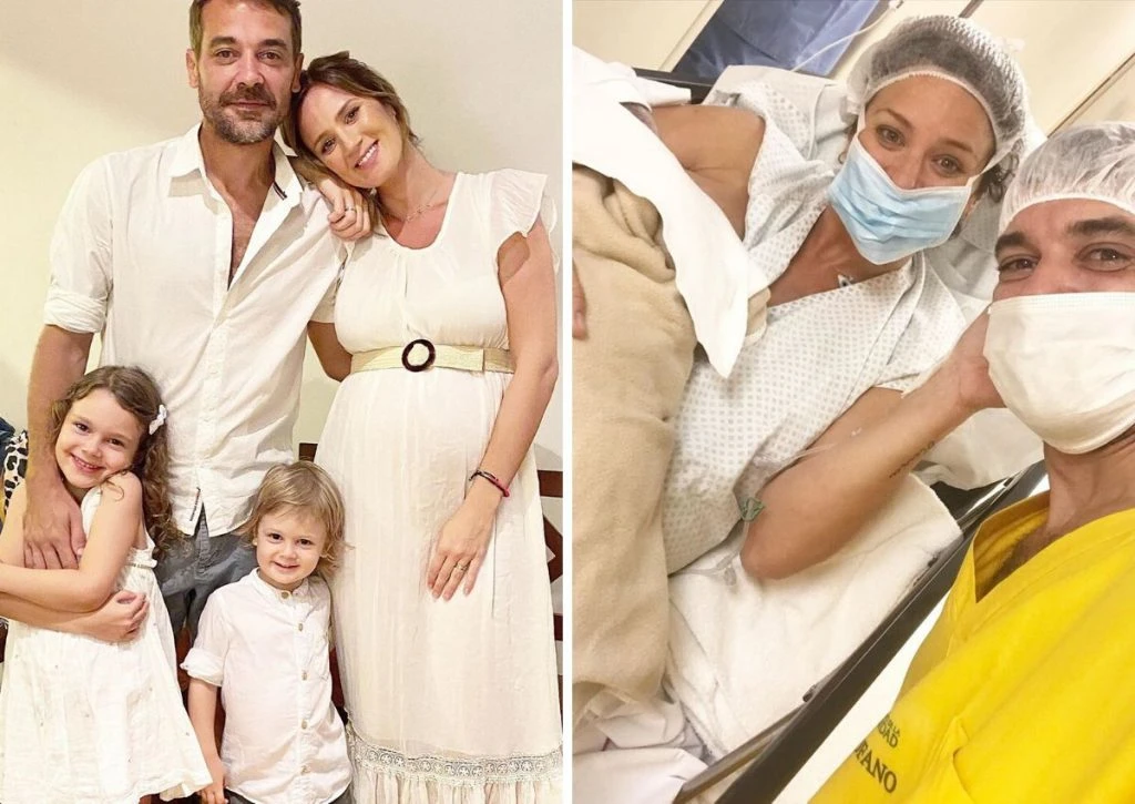 Dos días después, Paula recibió el alta y el actor mostró cómo se conocieron Olivia, de 6 años, Baltazar, de 3 y la pequeña de apenas unas horas.