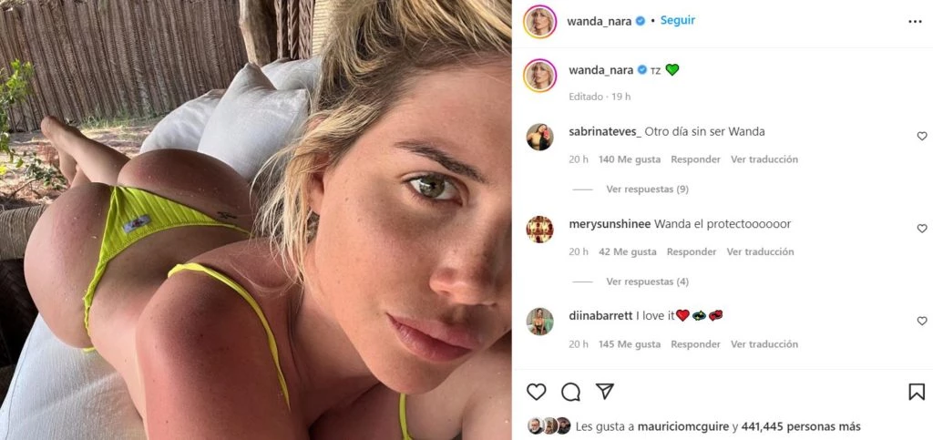 A pura chicana, la morocha disparó en un comentario público: “¿Este es tu diario íntimo? ¿O qué onda?". Tras leer este mensajito, Wan decidió editar su reflexión y, luego de borrarla por completo, escribió “TZ” y sumó un corazón verde.