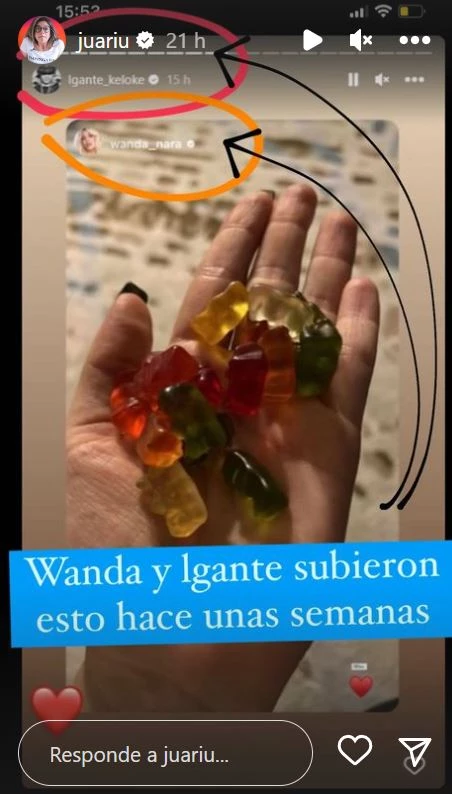 ¿Qué hizo Mau? Una movida muy cínica que hiela la sangre: replicó una foto que Wanda le había dedicado a Elián cuando voló a Turquía, luego de sus semanas de soltera en Buenos Aires, un primer plano de su mano con gomitas de colores, la palabra “Miss” y corazones rojos.