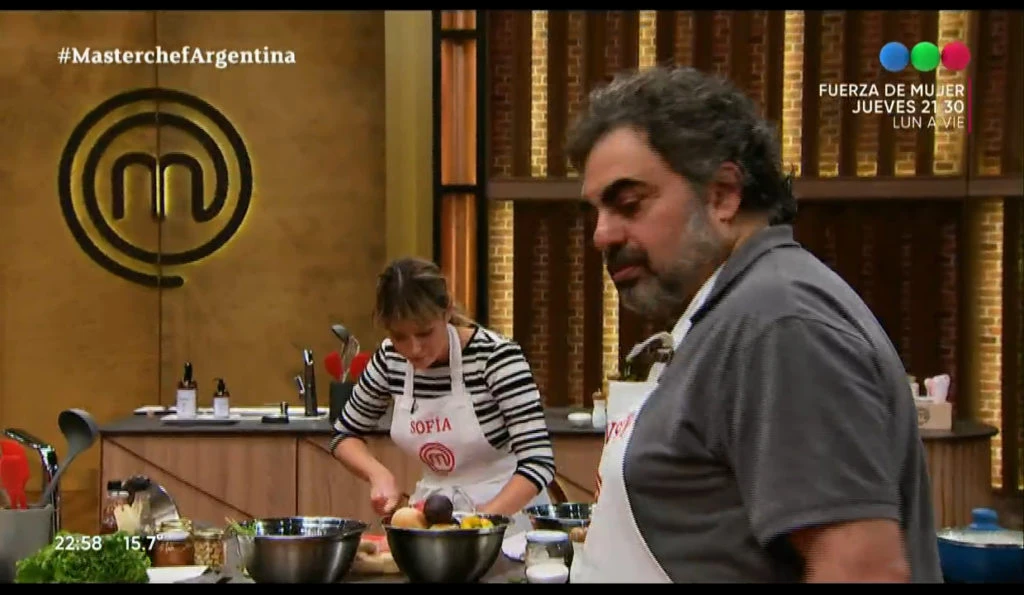 El pasado miércoles, Sofía Pachano ganó la medalla de oro con tus 'taquitos asiáticos'. Luego del desafío de la ruleta, la actriz tuvo que cocinar un plato improvisando con lechuga, manzana y pollo. Pero al parecer el desafío fue doble porque la participante además de armar su plato tuvo que hacer de asesora de uno de sus compañeros. En las entrevistas del Backstage se burló de uno de sus compañeros y las redes no se lo perdonaron.