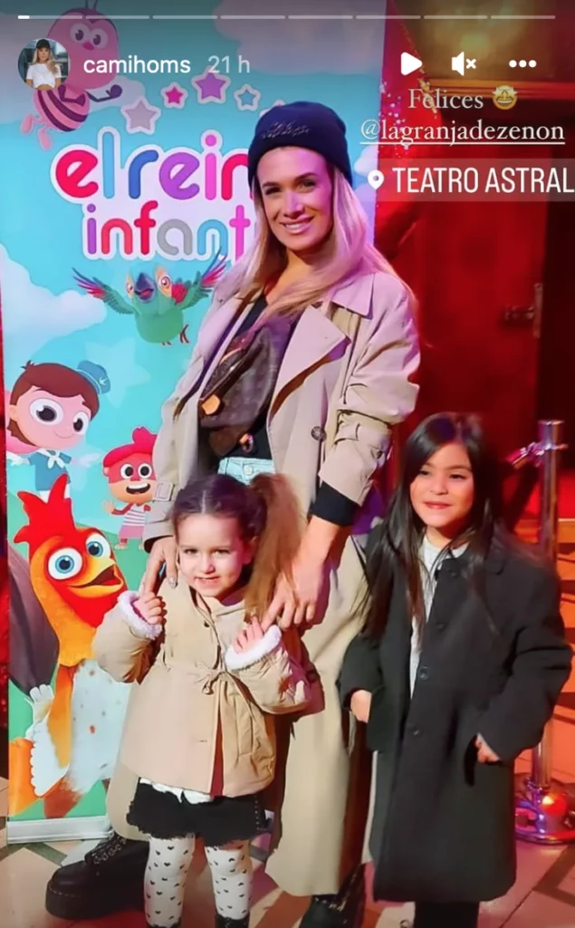 Mientras de Paul estaba con Stoessel festejando su cumpleaños, Homs se encontraba junto a sus hijos Bautista y Francesca viendo la obra de teatro La Granja de Zenón. Tras esto, la modelo cambió de look para asistir al festejo de cumpleaños de una de sus amigas.