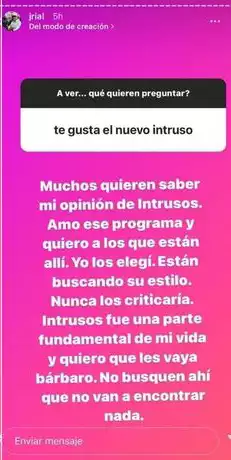“Te gusta el nuevo intrusos”, le consultaron. “Muchos quieren saber mi opinión, yo amo ese programa y quiero a los que están allí; yo los elegí, están buscando su estilo y nunca los criticaría. Fue una parte fundamental de mi vida y quiero que les vaya bárbaro. No busquen ahí que no van a encontrar nada”, aseguró.