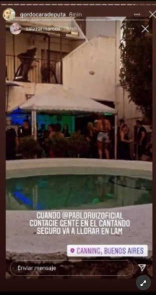 Las imágenes fueron compartidas por distintas personas que asistieron a la fiesta clandestina. Uno de ellos, se quejó: "Cuanto Pablito Ruiz contagie gente en el Cantando seguro va a llorar en LAM".