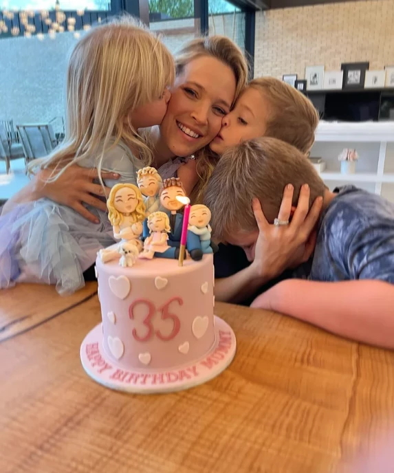Y si bien la actriz no suele mostrar a su descendencia, salvo de espaldas o fuera de foco, para su cumpleaños número 35 se animó a compartir una hermosa postal donde se la ve rodeada de los tres chicos: Noah (9), Elías (6) y Vida (4).