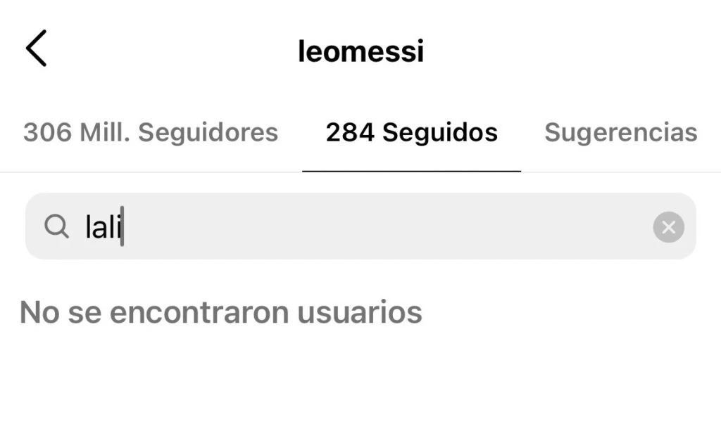 Pero fue Maite Peñoñori quien investigó y reveló: "Messi no solo dejo de seguir a Lali sino que las únicas mujeres que sigue son esposas de amigos (casi todos futbolistas), familiares suyos y de Antonella de Rosario, Susana y Beyonce. Todos los demás, hombres". ¿El motivo? Nadie sabe, quizás sea un enojo de Roccuzzo.