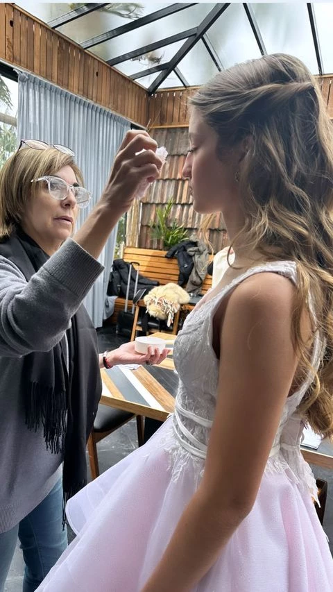 Nicole compartió el detrás de escena, en dónde la teen era maquillada y luego apareció con vestidos de fiesta en un salón que funcionó de locación. De esta forma la modelo reafirmó su apoyo a su hija en esa profesión, pero en esta ocasión protegida por ella.