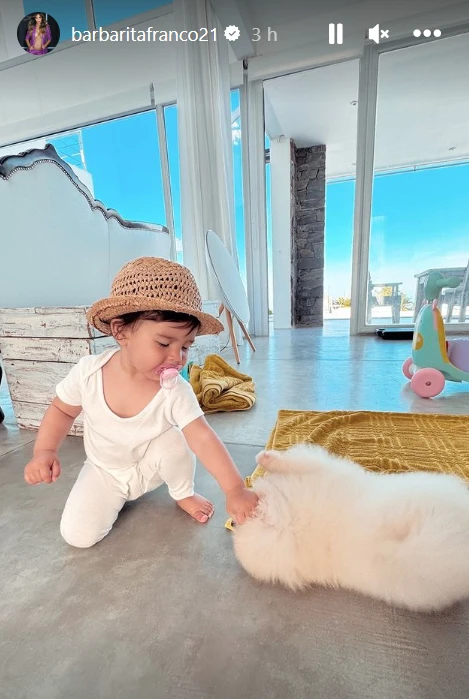 Y, en las últimas horas, la modelo compartió tiernas postales de su hija Sarita con el perrito blanco, que se adaptó feliz a su nueva familia la cual, según dijeron, le dejarán el nombre original: el hit de Cristian Castro, “Azul”.