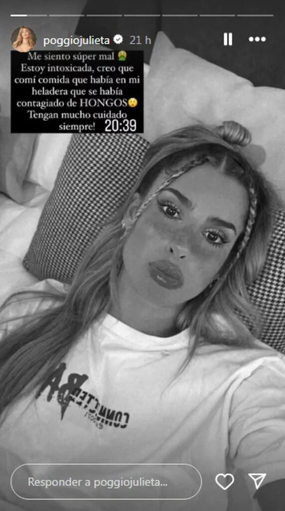 "Me siento súper mal. Estoy intoxicada, creo que comí comida que había en mi heladera que se había contagiado de HONGOS. Tengan mucho cuidado siempre", contó mediante su cuenta de Instagram la reconocida bailarina y se mostró angustiada.