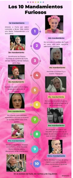 "No robarás, pero siempre expondrás a los que lo hicieron en la casa", "Le chuparán un hu... 'lo valores'", "No apoyarás ningún shippeo entre Furia y otros", "Harás blindaje Furioso de anti y haters", completan esta serie de mandamientos absolutamente polémicos, que activaron una oleada de recriminaciones y críticas, así como juntaron la adhesión de los obtusos fanáticos de Juliana.