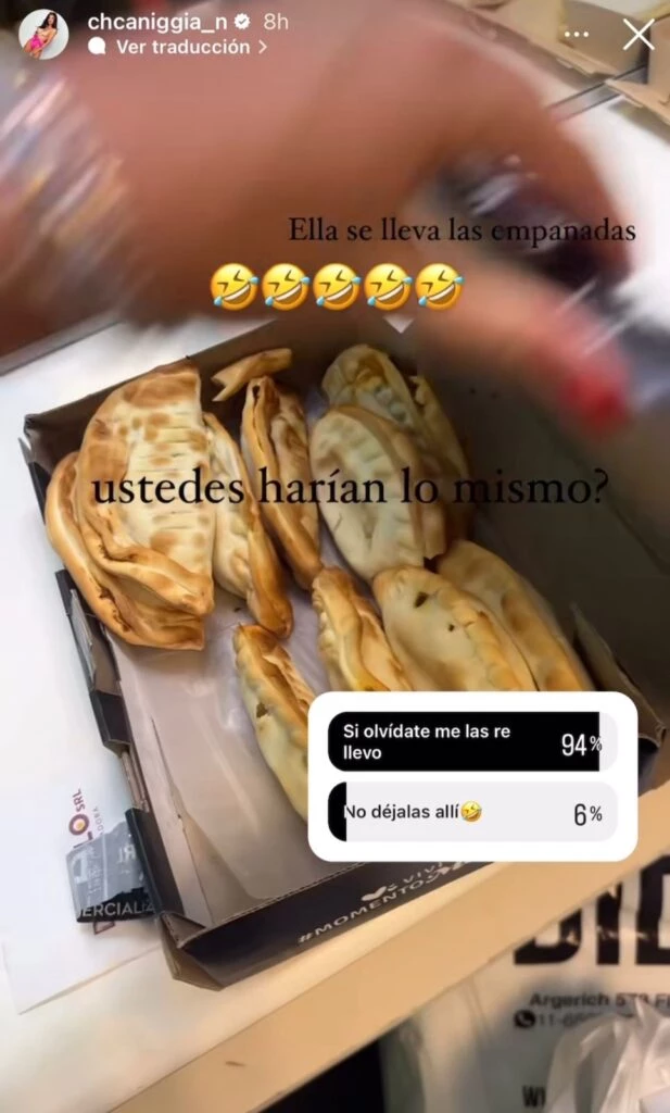 CHARLOTTE CANIGGIA SE LLEVÓ LAS EMPANADAS PARA SU CASA