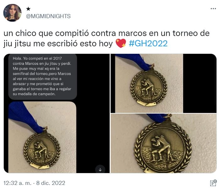 “Pero Marcos, al ver mi reacción, me vino a abrazar y me prometió que, si ganaba el torneo, me iba a regalar su medalla de campeón”, cierra. Para más pruebas, esta persona mandó fotos de la supuesta medalla. ¿Será verdad?
