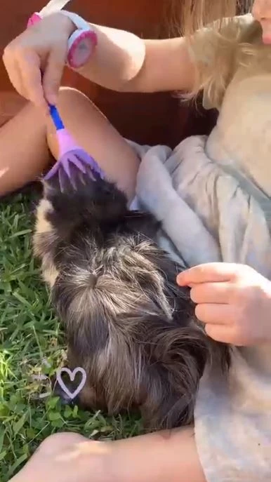En el video se ve a la pequeña peinando con cuidado al animalito, mientras la actriz la guía con algunas indicaciones.