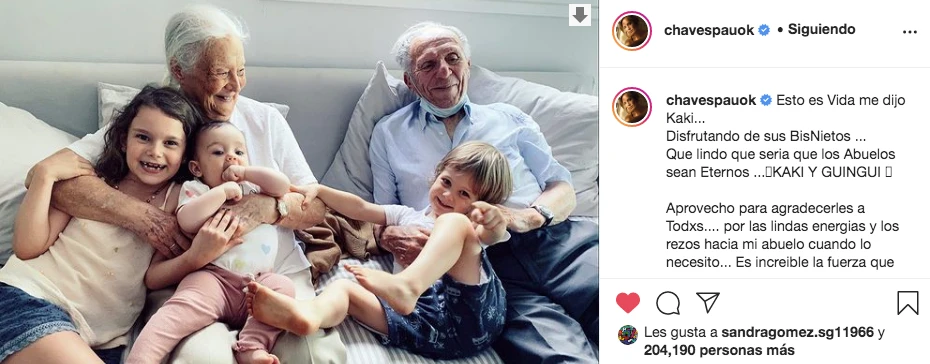 "Disfrutando de sus nietos...Qué lindo que los abuelos sean eternos", expresó Paula.