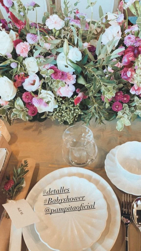 Emocionadas por esta velada, fueron sus amigas la que a través de las redes sociales mostraron toda la intimidad del baby shower y dejaron ver el increíble arreglo floral como centro de mesa, los delicados platos con sus respectivas servilletas -las cuales cada una tenían una etiqueta impresa con el nombre del comensal que debía ocupar ese espacio-, y también dejaron ver la espectacular merienda con riquísimas cosas dulces y saladas para disfrutar de la reunión.
