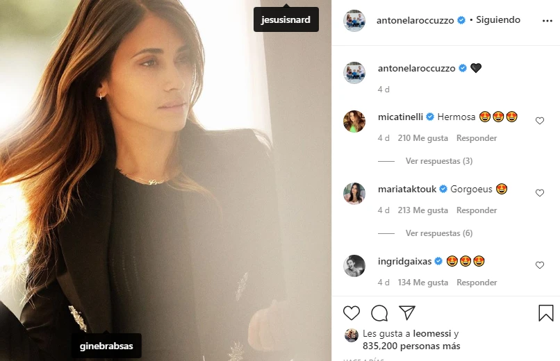 Entre los likes obviamente estuvo el de su marido, Messi y uno de los comentarios fue el de la hija del conductor, feliz por la publicidad de la empresaria: "Hermosa".