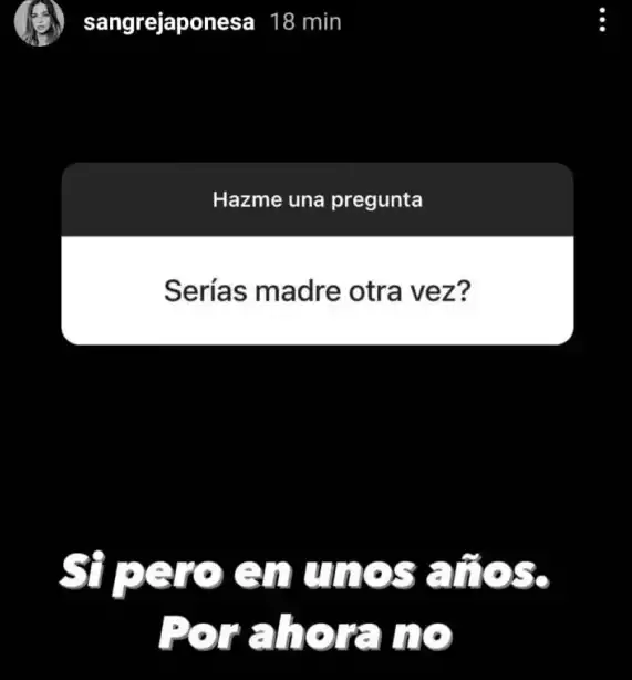 A través de sus "historias", la actriz aseguró que quiere volver a traer un hijo al mundo pero no en este momento, aclaró para evitar cualquier tipo de especulación en cuanto a la “coincidencia” de los tiempos.
