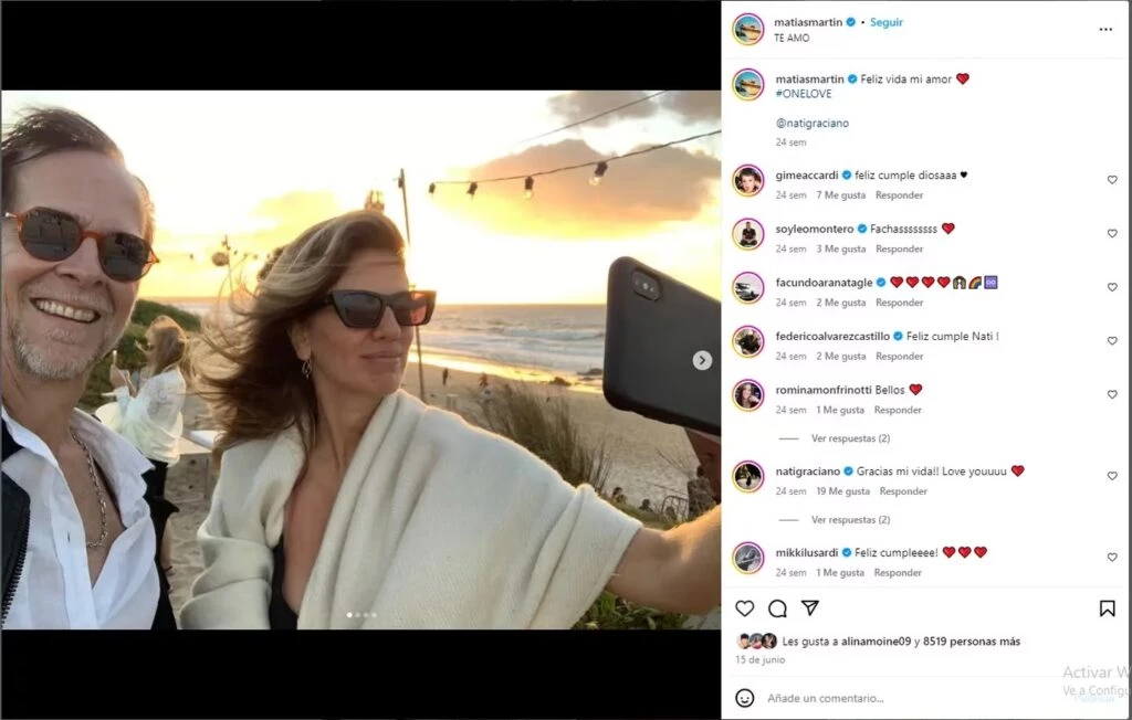 Lo que llamó la atención fue el último posteo que Matias Martin le dedicó a Natalia Graciano mediante sus redes sociales hace tiempo. El famoso conductor compartió una foto con la famosa y escribió súper enamorado: "Feliz vida mi amor".