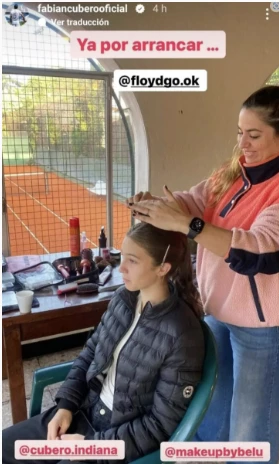 En las stories que colgó Cubero se percibe a Indiana en el backstage, en pleno proceso de maquillaje con una especialista, así como se puede divisar que emuló jugar al hockey para que las cámaras captaran esos movimientos para conseguir el material deseado.