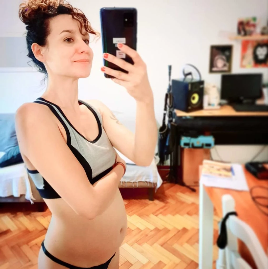 Con una foto en top deportivo y ropa interior, la cantante anunció que está embarazada de 20 semanas. "Que me contursi?! ❤💥 #20semanas #mommylife", escribió en su cuenta de Instagram y provocó la reacción de miles de fanáticos y amigos.