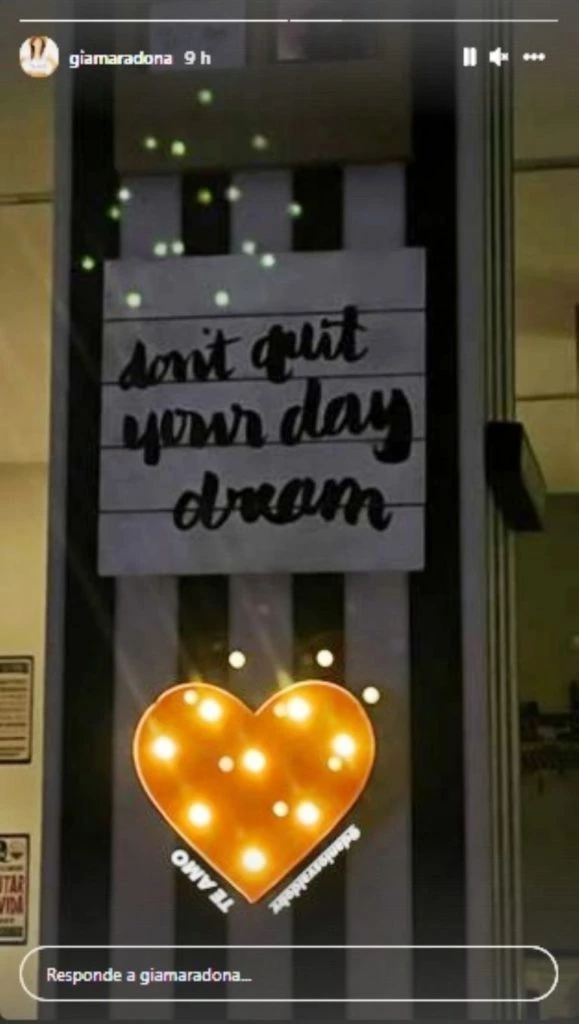 "Don´t quit your day dream. Te amo", escribió la hija de Diego Maradona arrobando al deportista.