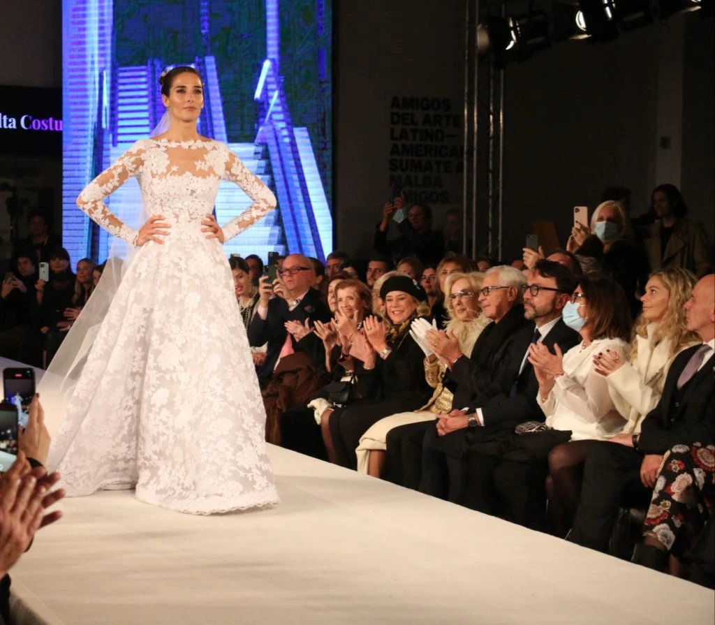 Majestuosa con un hermoso vestido de novia blanco como la nieve, con encaje, larga cola y transparencias, Juana Viale bajó las escaleras del Museo Malba y dejó atónitas a Mirtha Legrand y a Marcela Tinayre, sentadas en primera fila para el cierre de la Semana de la Alta Costura en Buenos Aires.