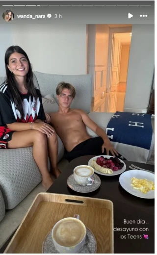 La ex conductora de Bake Off retrató el momento matutino, ese que disfrutó con su pequeño adolescente y su pareja, en el living de su casona. Así se los percibe a los dos jóvenes en un sillón y con un gesto de felicidad, ante lo cual Wanda describió: “Buen día, desayuno con los teens”.