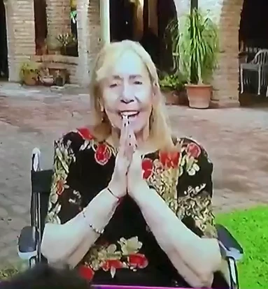 “Cómo te extraño, yo te veo tan hermosa en la tele. No me pierdo un solo programa tuyo. Veo todas las noches”, comenzó Mecha a hablarle a su nieta, Florencia, a puro corazón. “Acá las chicas me peinaron, Marcelo me vistió así…Graciela me dio permiso…”, contó la "nona".