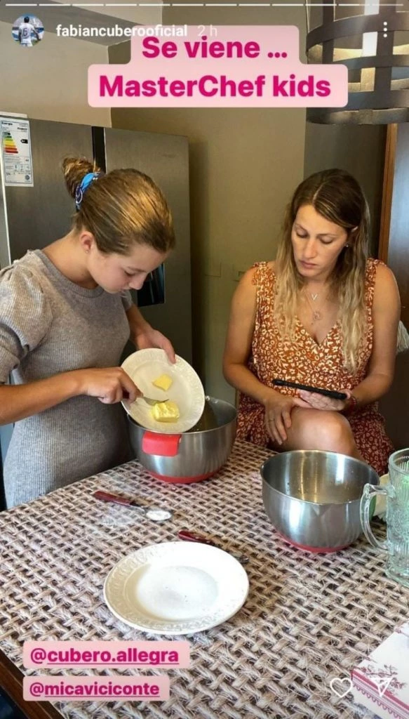 Mica mostró cómo les enseñó a cocinar para la cena, a partir de los conocimientos que sumó con su paso por MasterChef, por eso escribió: "Papas bravas... Aprendiendo para invitar a sus amigas". Poroto aportó otras fotos de la intimidad del hogar y posteó: "Se viene MasterChef Kids".
