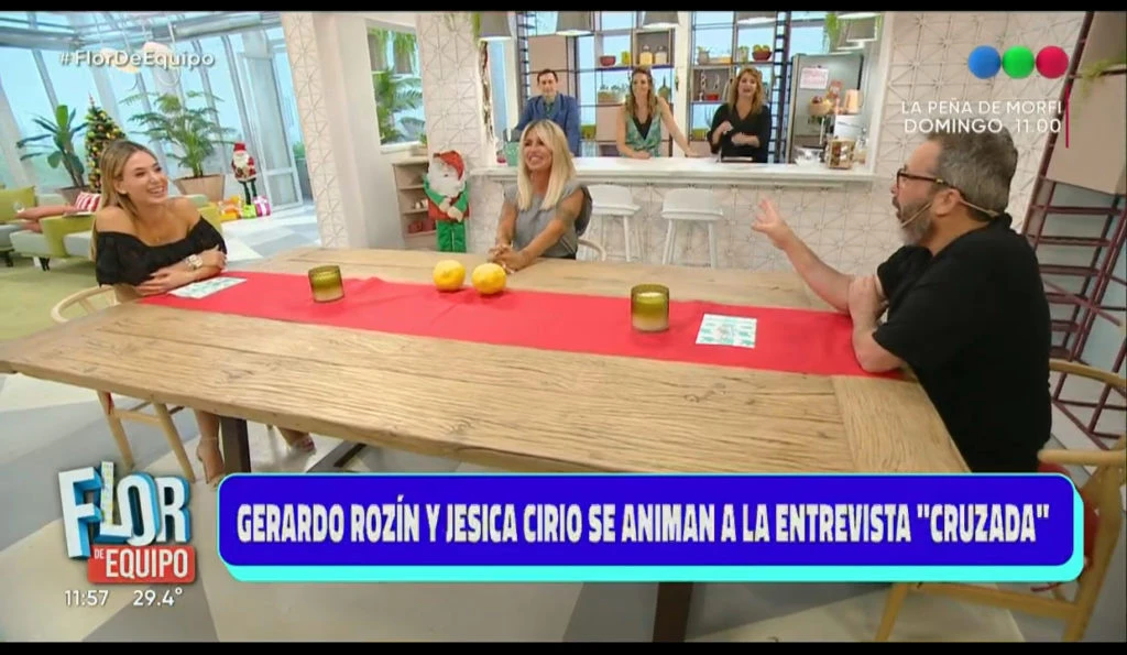 Durante la mañana del viernes, Jesica Cirio y Gerardo Rozín estuvieron como invitados al programa Flor de equipo, conducido por Florencia Peña por la pantalla de Telefé, y celebraron sus cuatro años juntos como equipo de trabajo, siendo conductores de La peña de Morfi.