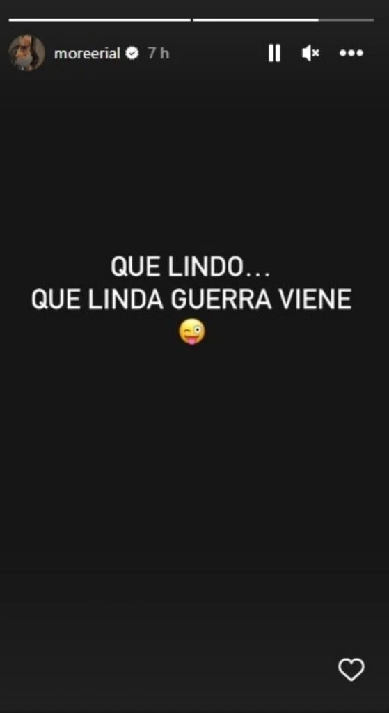 Además de decir que no tiene diálogo con su hermana Rocío y su círculo de amigas en muy chico, al terminar la entrevista subió una historia en Instagram que causó desconcierto, no tenía un contexto puntual, solo decía "QUE LINDO, QUE LINDA GUERRA VIENE" sin más, junto a un emoji de una carita haciendo una mueca de gracia.