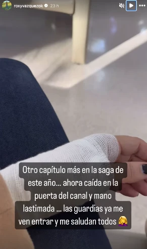 "Otro capítulo más en la saga de este año", comenzó escribiendo Roxy junto a un video donde se podía observar la sala de los Sanatorios de la Trinidad. En el corto clip que filmó, se puede observar como su mano tiene una venda hasta la muñeca.