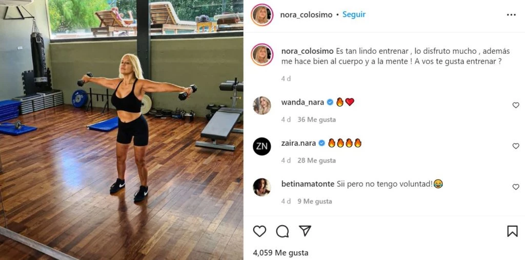Y así lo demostró en los últimos días la mamá de las chicas en sus redes, cuando haciéndole “ole” al calor agobiante que nos calcinó, presumió de su excelente estado físico y de las pilas que le pone a su rutina física en el gym de su edificio.