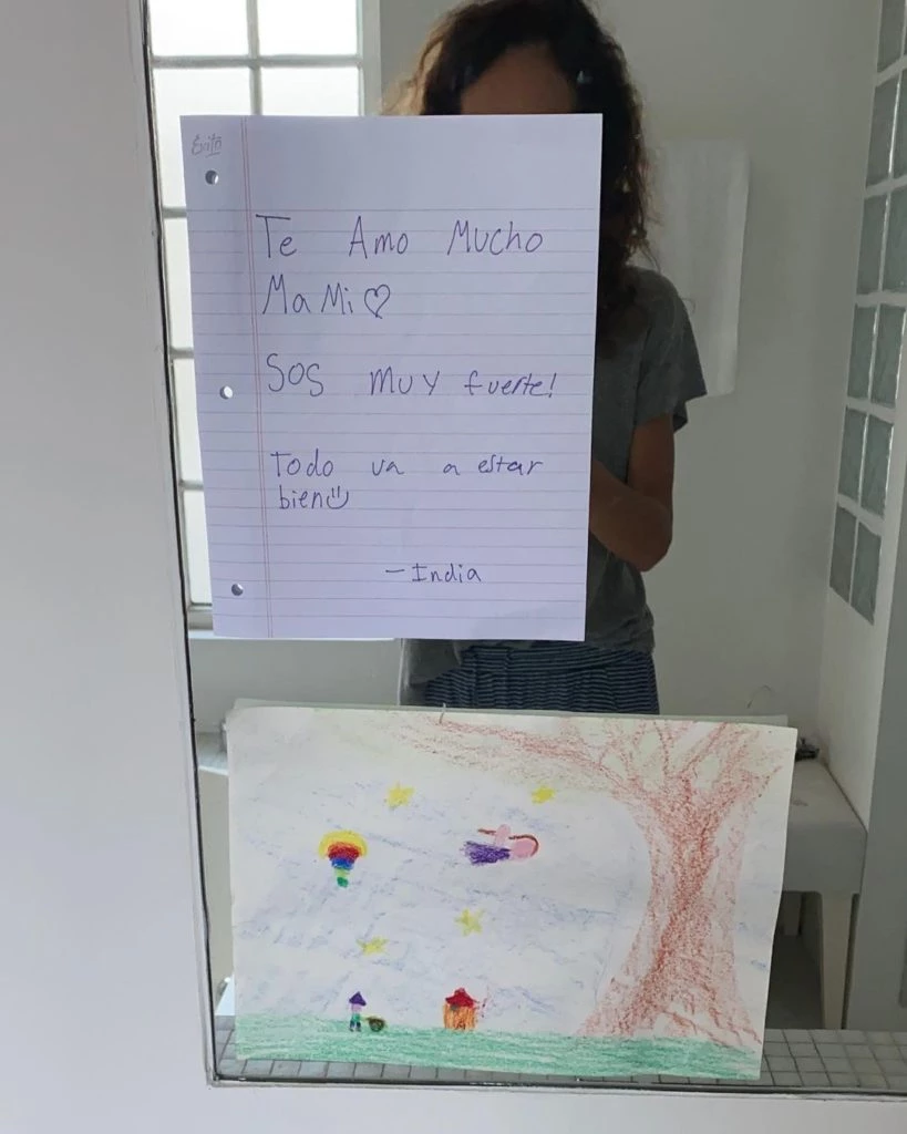 Pero el mensaje que más llamó la atención fue una hoja donde le escribió India: "Te amo mucho, mami. Sos muy fuerte. Todo va a estar bien".