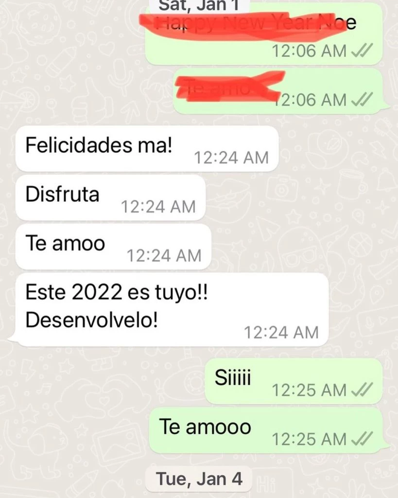 Motivada por el amor o el deseo de tenerlos a todos junto a ella, Dutil compartió algunas capturas de mensajes que le envían sus hijos. Uno de ellos en la noche de Año Nuevo le escribió: "Felicidades ma. Te amo. Disfrutá. Este 2022 es tuyo!! Desenvolvelo." "Siiii. Te amo.", escribió ella.