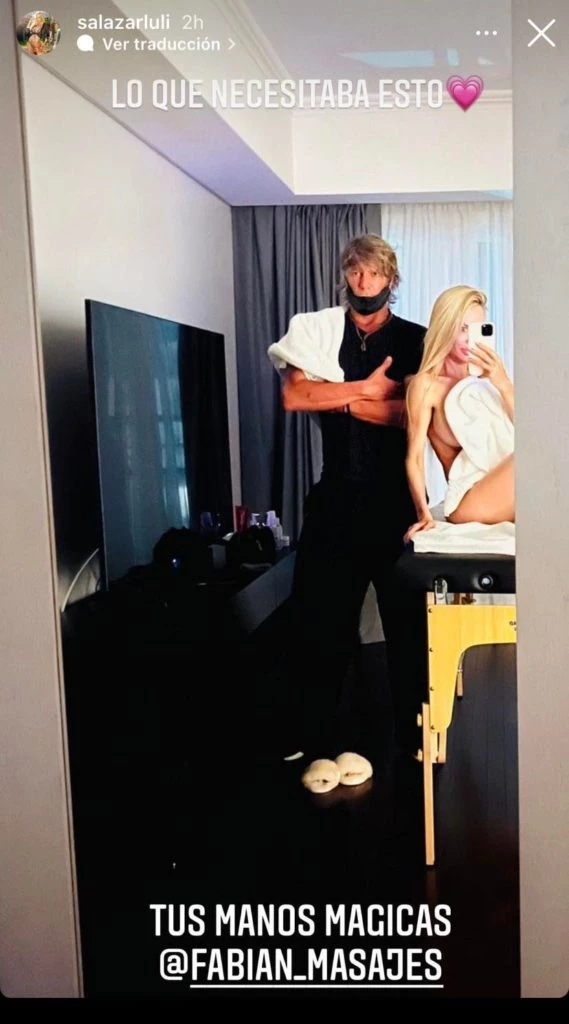 En las últimas horas, Luciana Salazar subió a sus historias de instagram una foto luego de una sesión de masajes donde se la veía reflejada en el espejo con el torso desnudo, cubriéndose con un toallón y posando junto al hombre que le brindó el servicio.