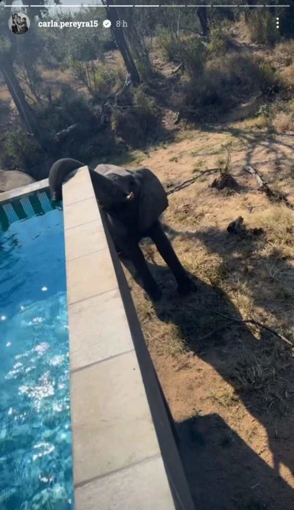 En otras de sus historias, estaban disfrutando de la tarde en una piscina cuando una familia entera de elefantes se acercó a tomar agua. La esposa del Cholo y sus hijas no lo podían creer. Carla, mientras vivían esta experiencia, comentó "vino toda la familia, hay cinco elefantes y un bebé", señaló.