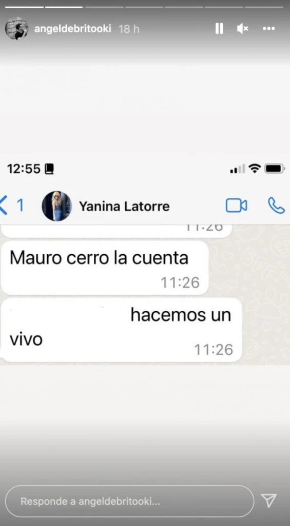 Por esta razón, Yanina no se pudo contener las ganas de hablar directamente con su amigo, Ángel, y proponerle hacer una transmisión en vivo para brindar más detalles de la pelea entre los tortolitos. "Mauro cerró la cuenta, hacemos un vivo", le mandó ella al presentador vía WhatsApp.