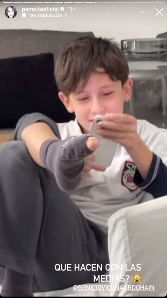 Lejos de editar el material y pretender obviar esa escena que hace a la vida diaria y que mostraba detalles que pueden pasarse por alto como mamá, Pampita redobló la apuesta y, tomándose con humor la situación, le mostró a su comunidad que otro de sus hijos también estaba en la misma situación”.